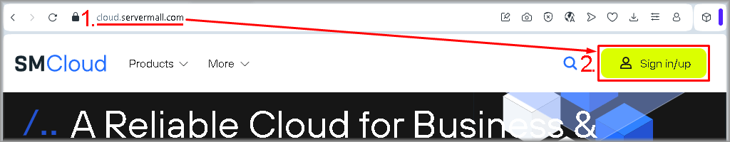 - Go to the website cloud.servermall.com.