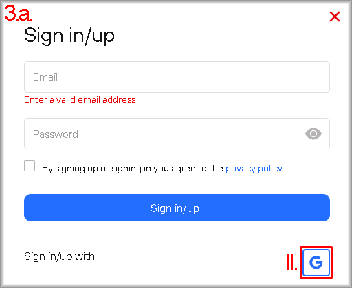 - Click the “Sign in/up” button located in the top right corner.
