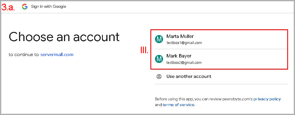 A window for choosing a Google account will open. - Select in the list the Google account that is linked to the Servermall Cloud account.