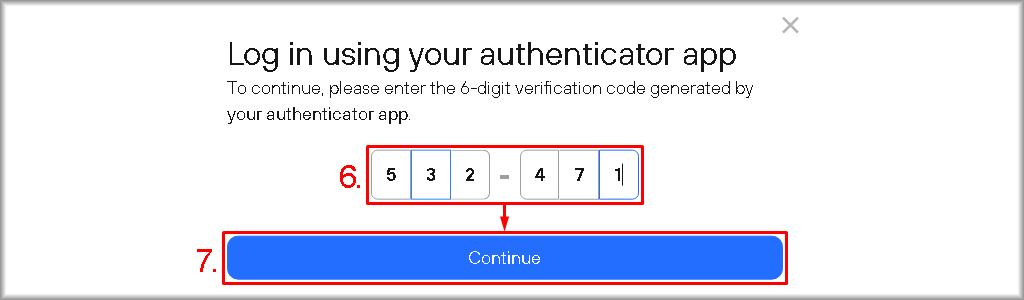 - Enter the authentication code you obtained in the previous step from the authentication program into the field of the “Log in using your authenticator app” window on the Servermall Cloud website.