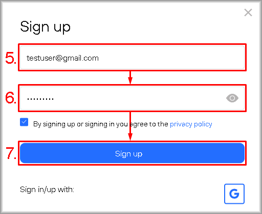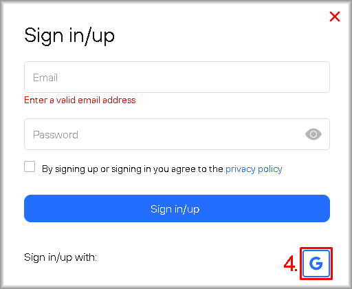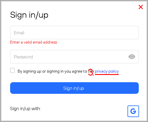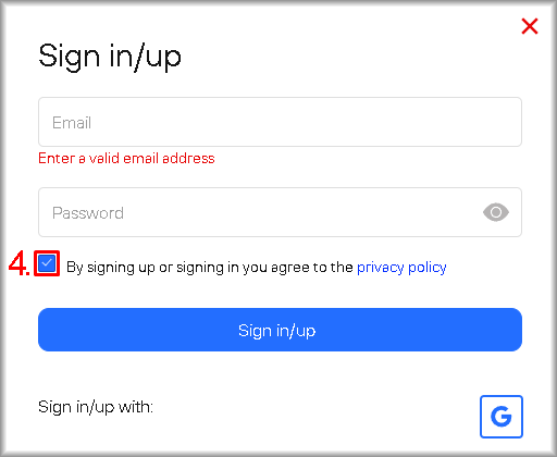 2. Tick the checkbox “By signing up or signing in you agree to the Privacy Policy” if you have read the documents and agree to their terms.