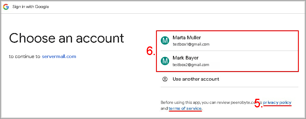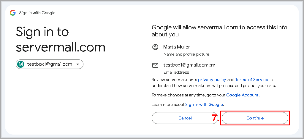1. Choose from the list the Google account you want to use to create your Servermall Cloud account.