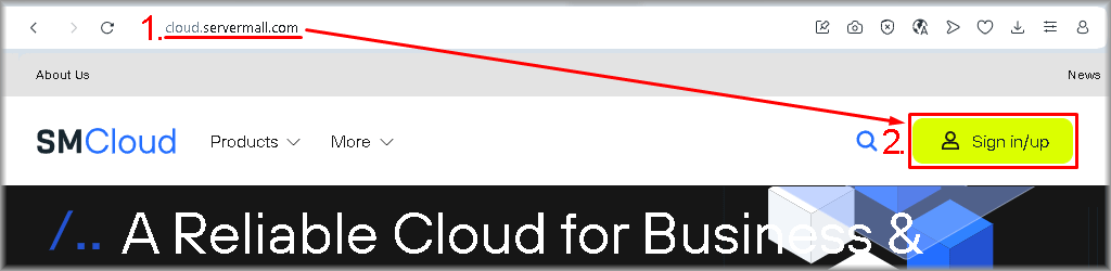 2. Click the “Sign in/up” button located in the top right corner of the Servermall Cloud home page.
