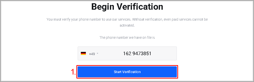 After you have saved the changes to the number, you will be redirected to the “Begin Verification” window, where you can start verification of the number. Repeat the verification starting from step 1.
