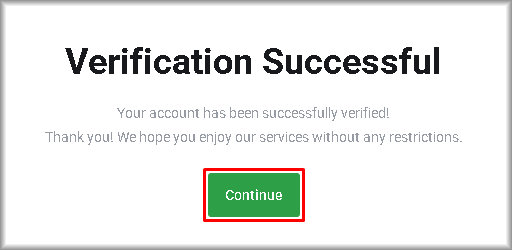 If verification is successful, the message “Verification Successful” will be displayed.
