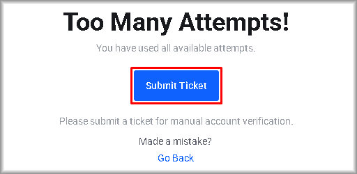 If you are on the “Too many attempts!” page, this means that you have exhausted the verification attempt limit.