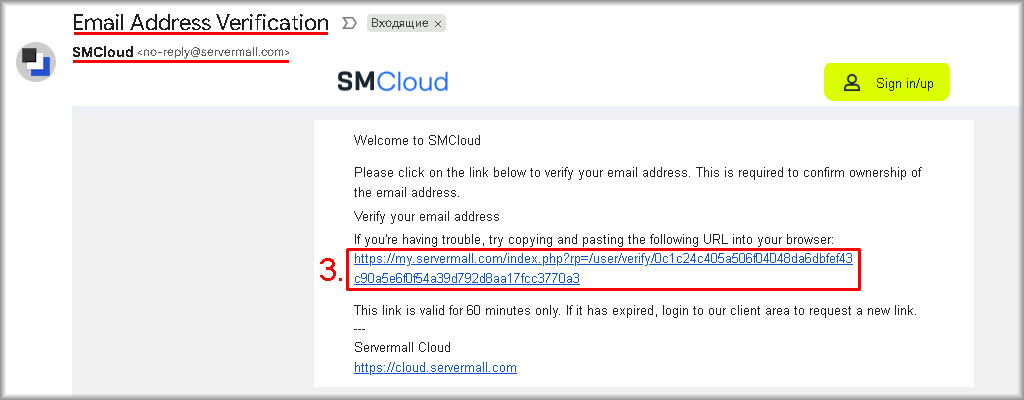 1. Sign in to the mailbox specified when registering the Servermall Cloud account.