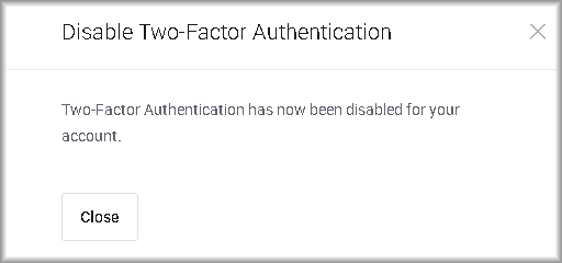 On the “Security Settings” tab, you will see the 2FA status as “disabled” — this confirms that two-factor authentication has been successfully turned off.