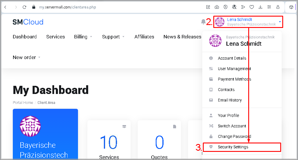 This guide describes how to enable two‑factor authentication (2FA) for signing in to your Servermall Cloud account. 2FA significantly strengthens the protection of your account, making unauthorized access difficult even if the login and the password are compromised.