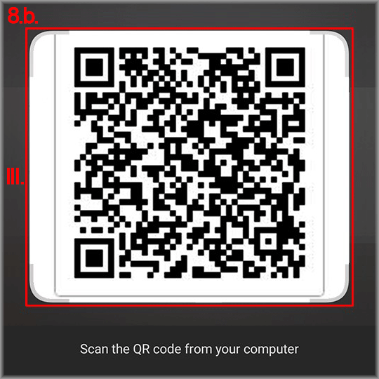 Make sure the 2FA mobile application has permission to use the camera. A QR‑code scanning window will open.
