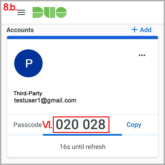 - Adding an account in Duo Mobile:
