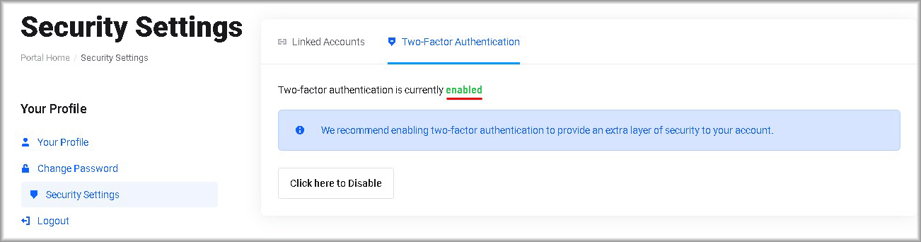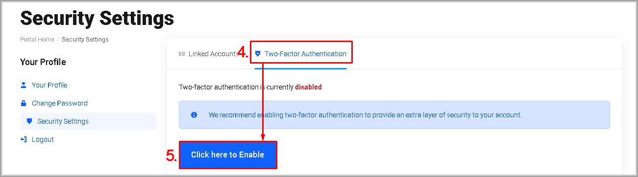 - Go to the “Two‑Factor Authentication” tab.