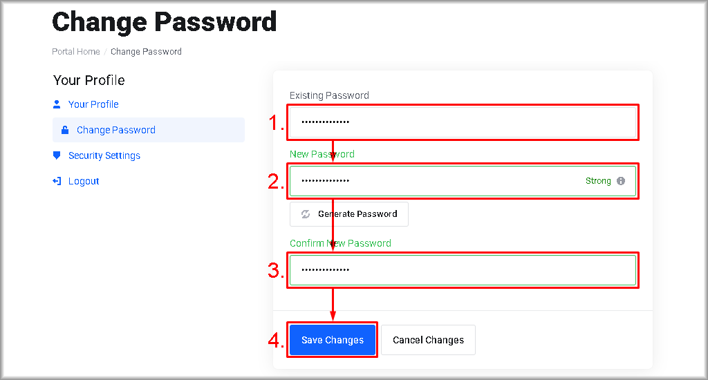 In the “Change Password” section, you can change your Servermall Cloud account password. The steps are described below.