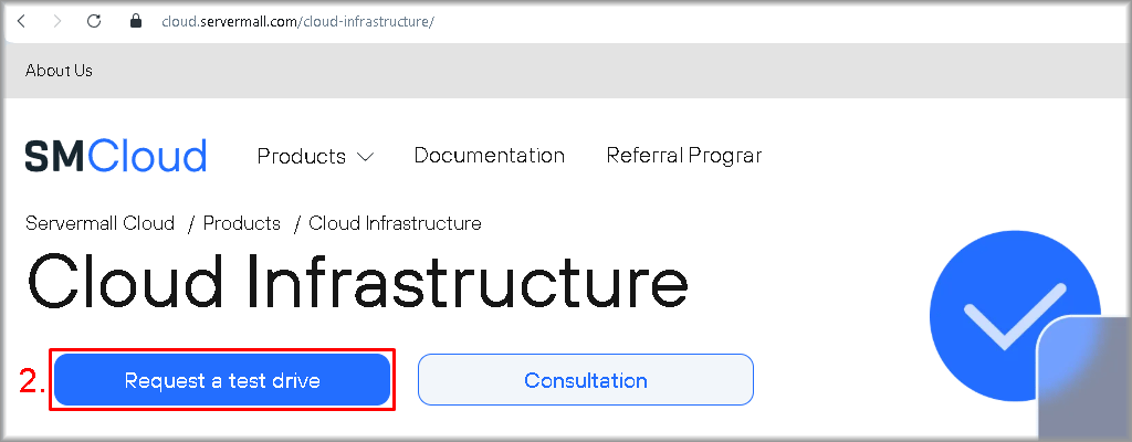 - On the website cloud.servermall.com, in the main menu select “Product“, then “Infrastructure” and “Cloud Infrastructure“.