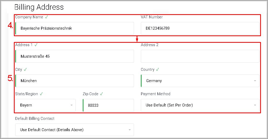 To do this, fill in the “Address 1“, “City” and “Zip Code” fields and select the appropriate values in the “Country” and “State/Region” lists.This data will be used for sending correspondence if necessary.