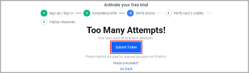 Too many attempts!If you see the “Too many attempts!” message, this means that you have exhausted the verification attempt limit. In this case, please contact our Support team for further instructions by clicking “Submit Ticket“. In your message to Support, specify the subject in the “Subject” field and briefly describe the issue in the “Message” field. Then click the “Send Message” button and wait for a response from Support.
