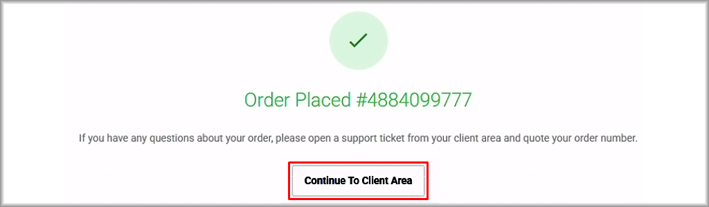 The amount for the cloud infrastructure will be debited from your account balance and the project deployment process will start. If everything is successful, you will see the “Order Placed” message. In this case, click the “Continue to Client Area” button to return to the control panel.
