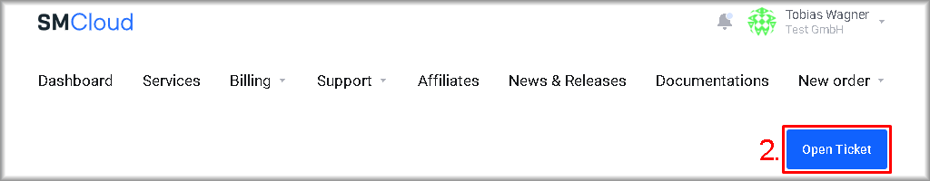 The sign‑in procedure is described in the “Signing in to the Control Panel” guide, and sign‑in with two‑factor authentication (2FA) is described in “Signing in to the Control Panel Using 2FA“. - Click the “Open Ticket” button.