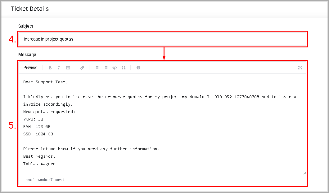 In both scenarios, before the free trial ends, you can contact Servermall Cloud Support to request changes to the amount of project resources available. If you exceed the allocated resource limits or use bonus funds, additional payment will be required.